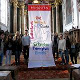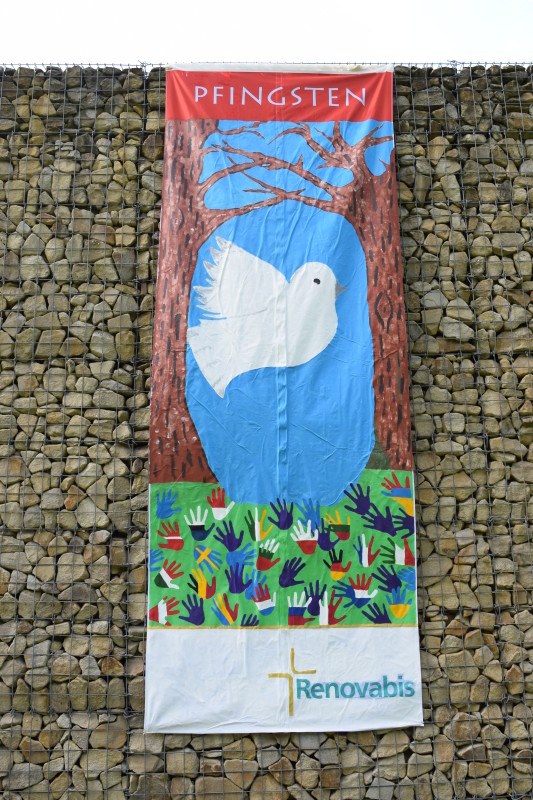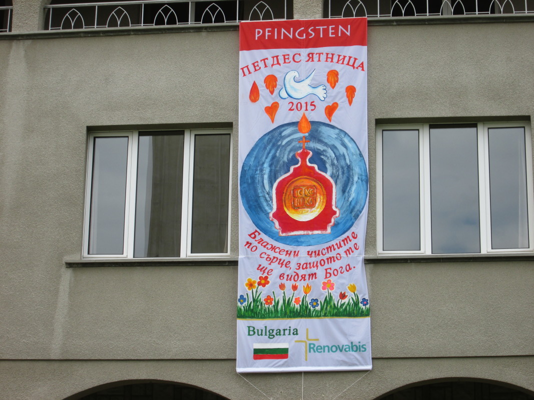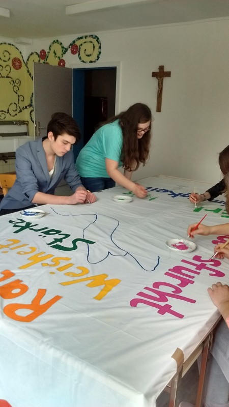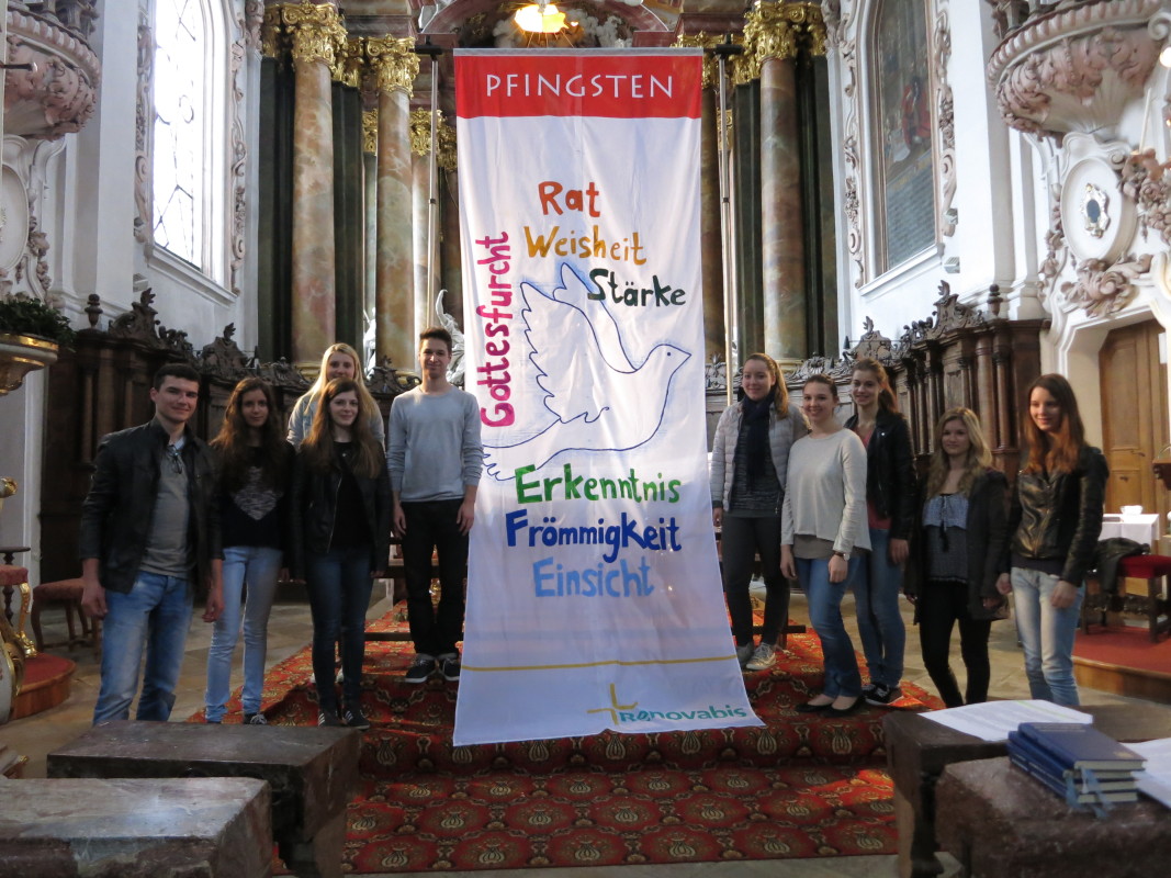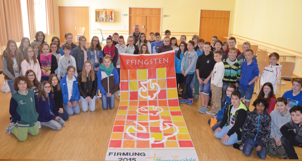 Wir haben nach Ihrer Anleitung mit unseren zukünftigen Erstklässlern ( d. h. mit den Schulfüchsen des Kindergartens ) und den dazu gehörenden Mamas, diese Pfingstfahne gestaltet. Wir hatten dabei viel Freude. Die Fahne wurde pünktlich zum Pfingstfest fertig und wir bekamen viele positive Rückmeldungen aus der Bevölkerung.