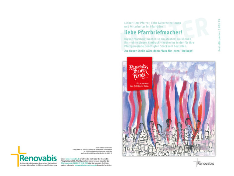 Ihr Pfingstbild ist für das Gebetsbildchen zur Renovabis-Pfingstaktion ausgewählt worden: Laura Knura hat dazu im Dezember schon an Pfingsten im Frühling gedacht. Ihre Ahnung vom Wirken des Heiligen Geistes hat die 17-jährige Abiturientin der Hildegardis-Schule in Hagen auf dem Bild dargestellt. Zwei Farben dominieren ihr Bild: rot und blau. Rot könnte für die Liebe stehen, blau für die Klarheit. Die vielen Köpfe, die nackten Gestalten werden übergossen mit Liebe und Klarheit.